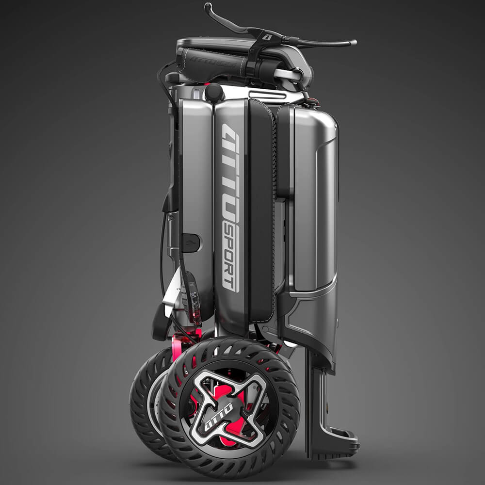 The Premium Mobility Scooter For many years, the Moving Life ATTO has been one of the best-selling foldable mobility scooters. It is known to equip with all the unique features that most mobility scooters or elderly scooters don’t have. The innovative Moving Life has recently developed a new generation of this fantastic scooter – the ATTO Sport. This new model has all of the valuable features of the original ATTO; it also has many extra enhancements to ensure it stands out from the crowd. Users described it as the “Sports Car” of the mobility scooters; as a result, the ATTO Sport should undoubtedly turn heads on your journey.