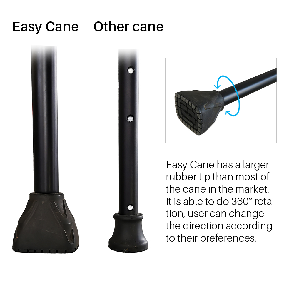 Easy Cane is able to extend in a second, very convenient for user who need support to stand up. Upon standing up, the user can extend the cane to the height they are comfortable with.