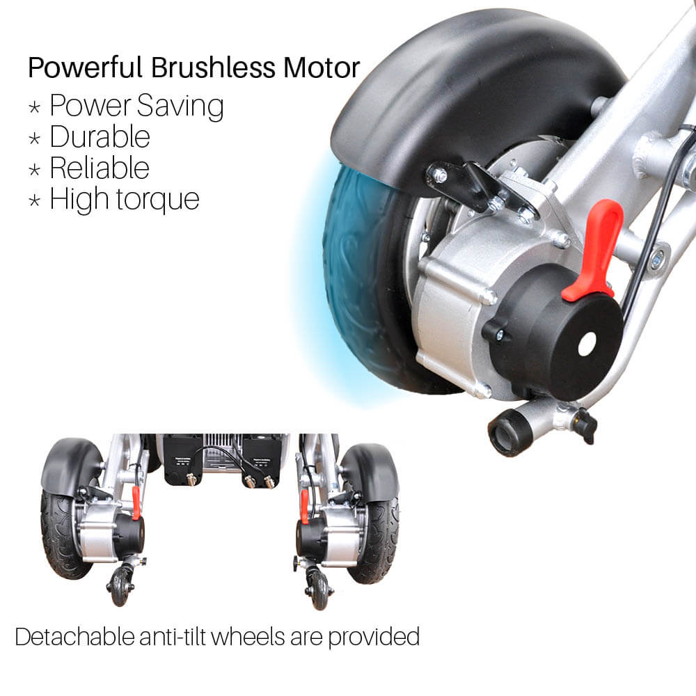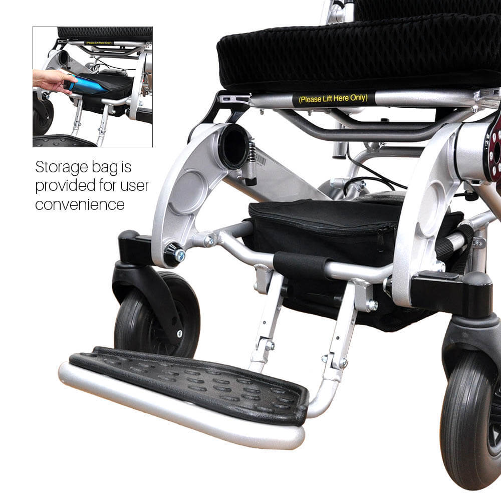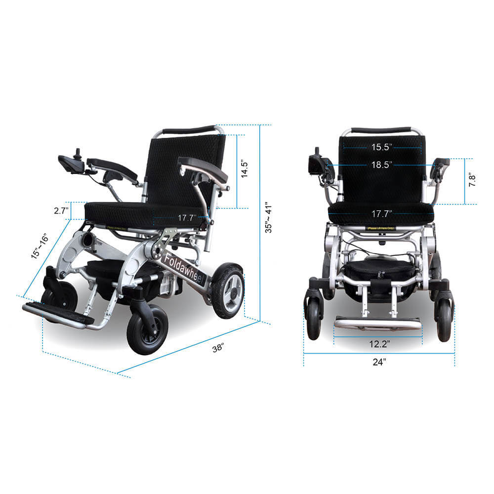 Foldawheel PW-1000XL weighs only 25.5 kg (56 lb) and it takes just 1 second to open/fold. It is a slightly wider version of our lightest power wheelchair PW-999UL, and it is built for heavier load capacity. If you love to drive a bit faster and need a bit more seat space, this would be an excellent choice. 2 years International warranty and Travel Bag as an optional accessory. The price you pay for now comes with 2 batteries.