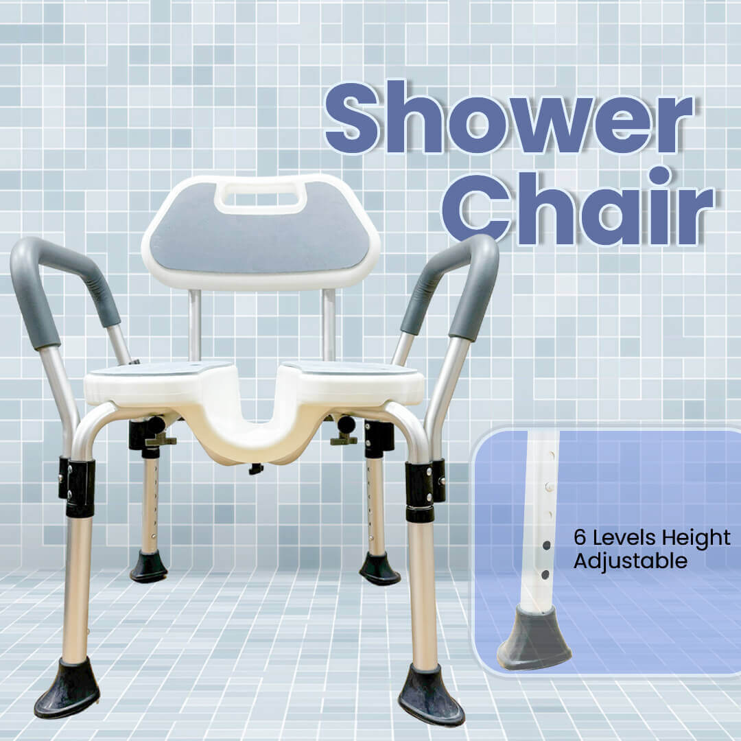 The U-Seat Shower Chair is designed for safer, more hygienic bathing. Its unique seat shape allows easier self-cleaning, while the soft, non-slip EVA padding adds comfort. With six height levels, anti-slip feet, and a lightweight, tools free assemble frame, it’s ideal for both home and travel use.