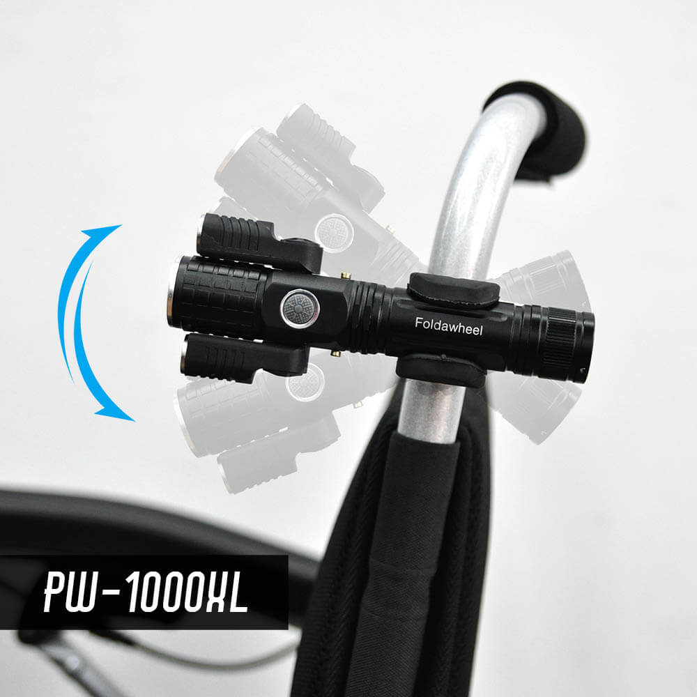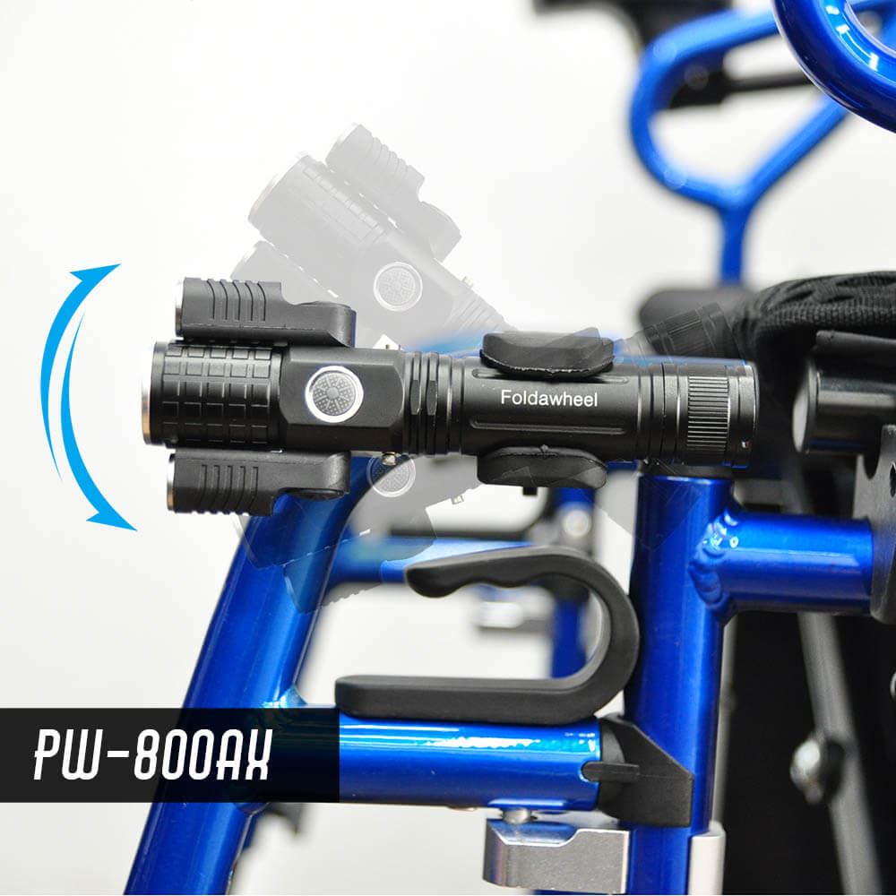 This is an angle-adjustable LED light set that will fit on most of the wheelchair. It comes with a branded high capacity rechargeable Li-ion cells.